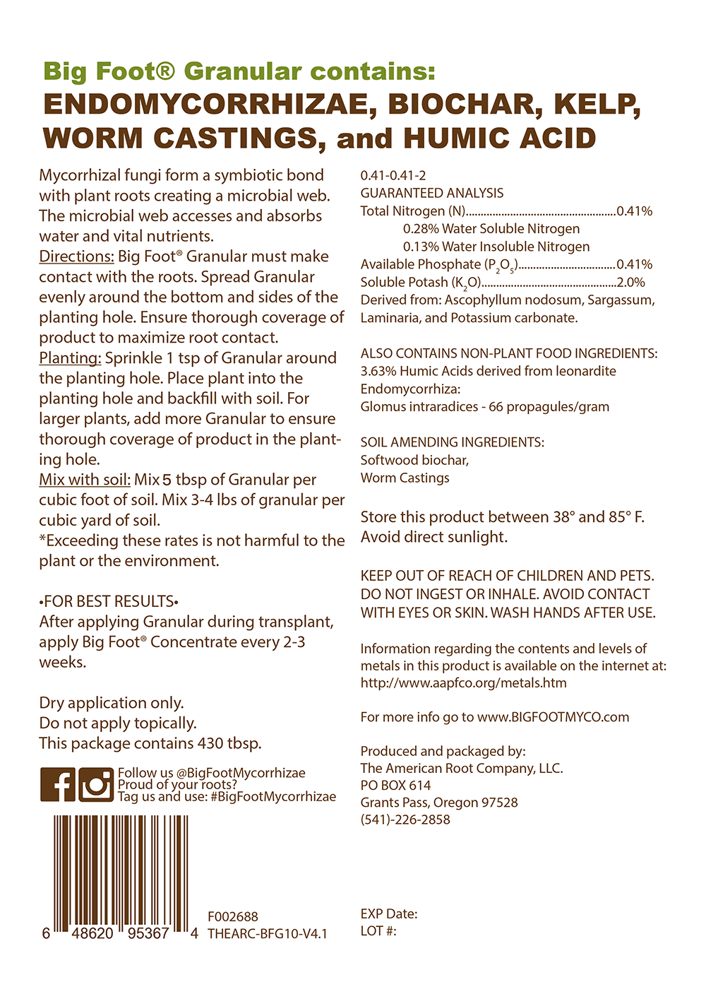 Big Foot Granular must make direct contact with the roots of the plant – if you are looking for a water-in application see our Concentrate or Gold.